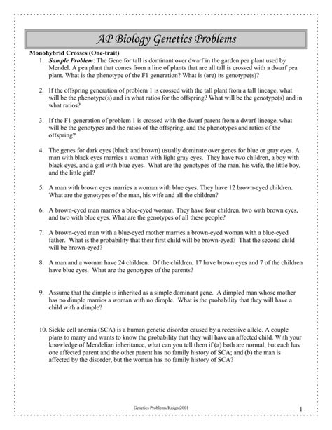 Free PDF AP BIOLOGY GENETICS PROBLEMS SOLUTIONS rtf BookBoon